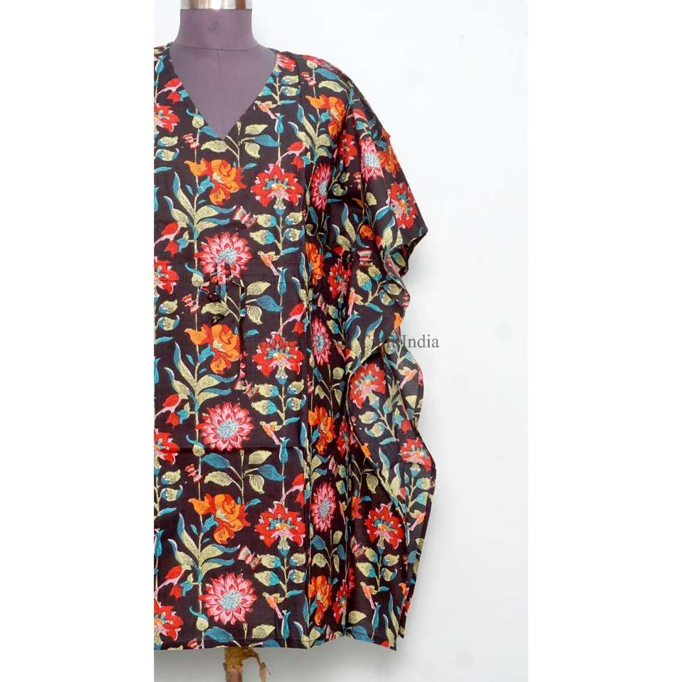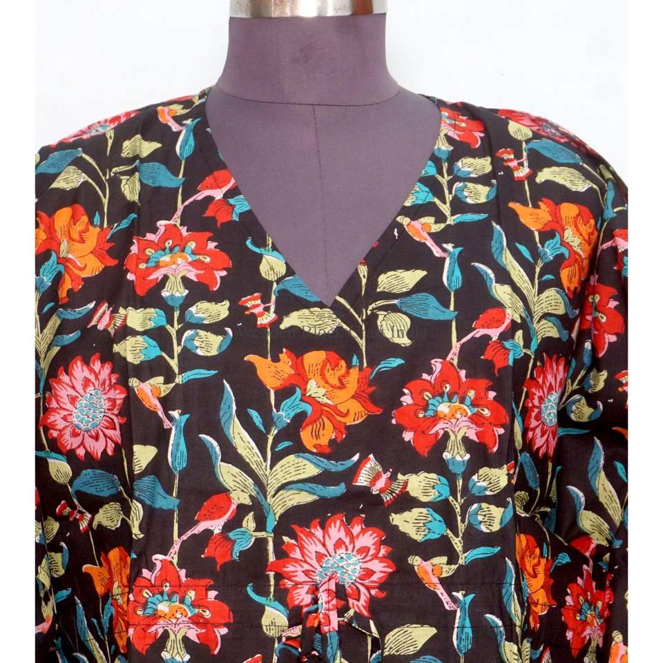 ชุดคลุมยาวพิมพ์ลายบล็อกอินเดีย ผ้าฝ้ายออร์แกนิคแท้ เนื้อผ้าบางเบา ชุดนอนสั้น ลายดอกไม้ ชุดชายหาด ชุดเดรสฤดูร้อน