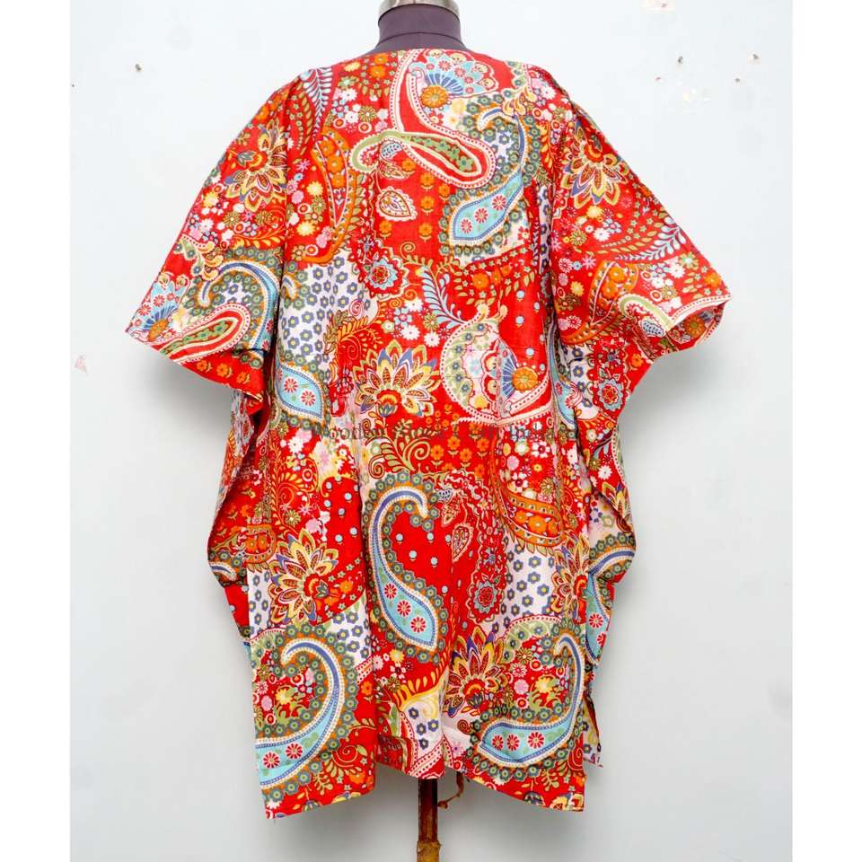 ชุดคลุมยาวพิมพ์ลายบล็อกอินเดีย ผ้าฝ้ายออร์แกนิคแท้ เนื้อผ้าบางเบา ชุดนอนสั้น ลายดอกไม้ ชุดชายหาด ชุดเดรสฤดูร้อน