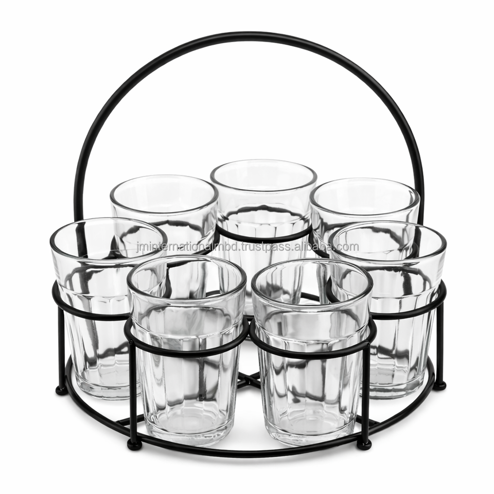 ชุดแก้วน้ำชาสไตล์โบฮีเมียนอินเดีย พร้อมฐานวางเหล็กสีทอง ความจุ 100 มล. สำหรับโรงแรมและใช้ในครัวเรือน