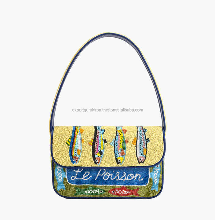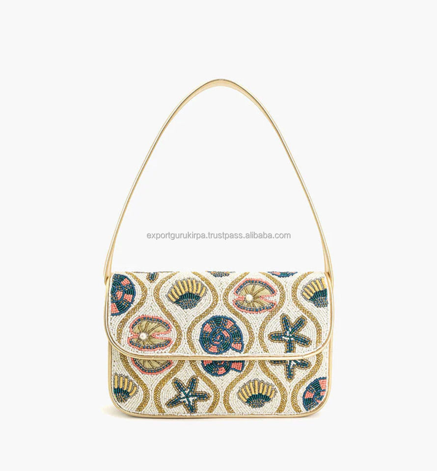 กระเป๋าคลัทช์งานปาร์ตี้สไตล์โบฮีเมียนอินเดีย ประดับลูกปัด ดีไซน์เนอร์ ทำมือ ใช้ได้ทุกวัน แบบสะพายข้าง Guru Kirpa Export ปิดแบบฝาพับ