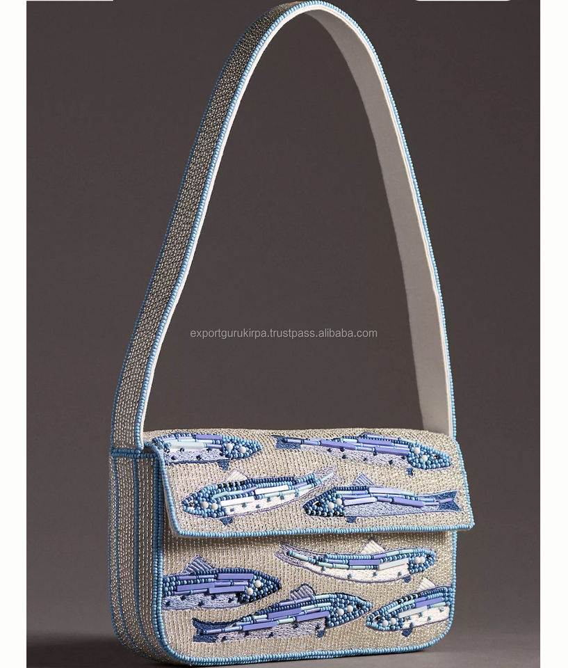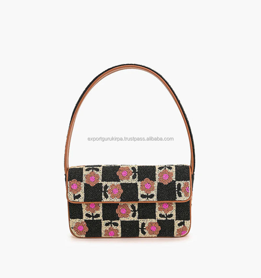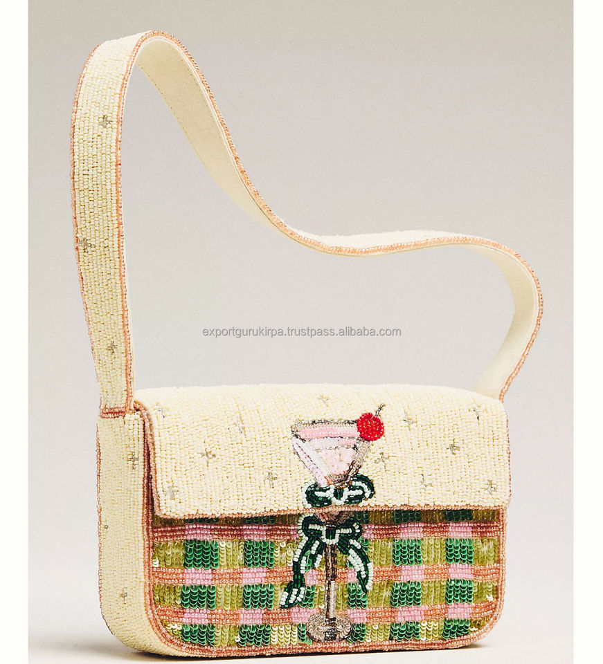 กระเป๋าทรงแมสเซ็นเจอร์ของผู้หญิงทำมือขนาดใหญ่สไตล์โบฮีเมียนทางอินเดียคลัทช์สำหรับช้อปปิ้งตอนเย็นประดับลูกปัดใช้ในชีวิตประจำวันสไตล์โบโฮ
