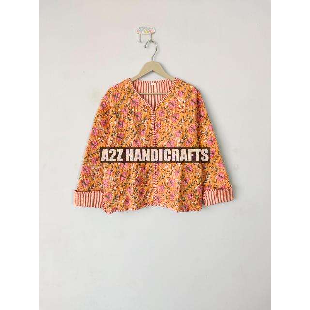 เสื้อโค้ท Kantha ผ้าคอตตอนบุนวมสไตล์โบฮีเมียนโบโฮสไตล์อินเดียแจ็กเก็ตผ้าสั้นพิมพ์ลายดอกไม้ไซส์ XL สำหรับฤดูหนาวสไตล์ผู้หญิง