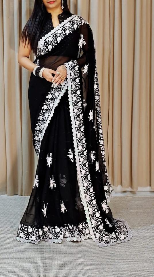 ชุดส่าหรีผ้าไหมเนื้อนิ่มสำหรับงานแต่งงานและงานปาร์ตี้จากนักออกแบบบอลลีวู้ดของอินเดีย