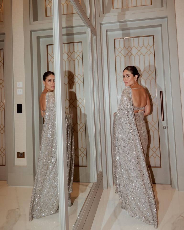 ผ้าซารีอินเดียสไตล์บอลลีวูด ลวดลายทันสมัย ผ้าจอร์เจตต์เนื้อหนา ปักลายอย่างประณีต เหมาะสำหรับงานแต่งงานและงานเลี้ยง