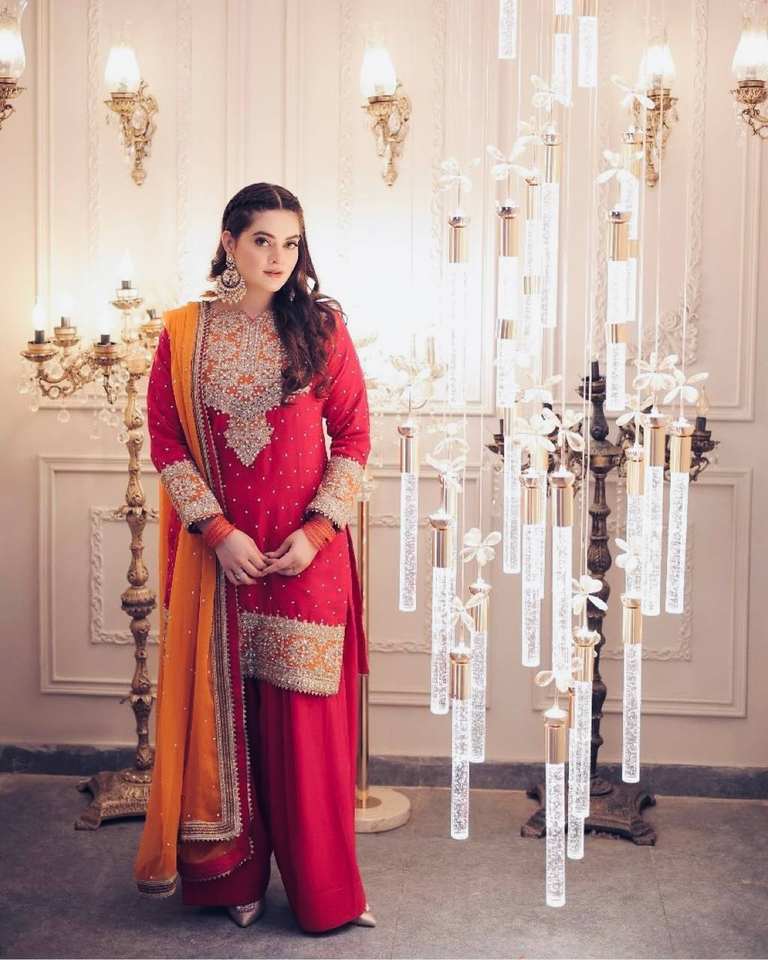 ชุดชาราร่าและผ้าคลุมไหล่สำเร็จรูปสำหรับงานแต่งงานและงานเลี้ยง ดีไซน์หรูหราสไตล์อินเดีย ผ้าไหมชิโนน ลวดลายทันสมัย ชุดพื้นเมืองสุดพิเศษ