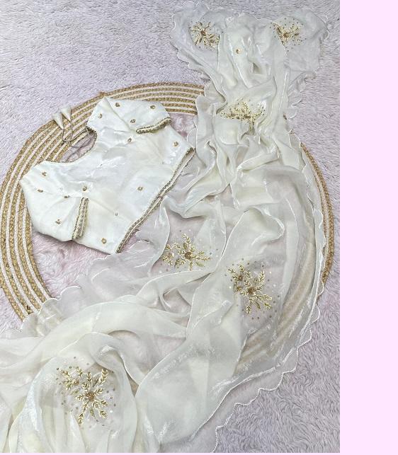 ชุดส่าหรีซาตินพร้อมเสื้อส่าหรีสำหรับผู้หญิงชุดปาร์ตี้แฟนซีแบบพิเศษบูติกอินเดีย