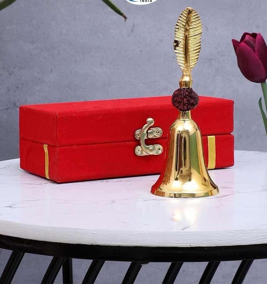 ระฆังทองเหลืองอินเดียลายรูดราคช พร้อมกล่องกำมะหยี่ ระฆังสวดมนต์แบบดั้งเดิมสำหรับวัด บ้าน หรือเป็นของขวัญในงานเทศกาล