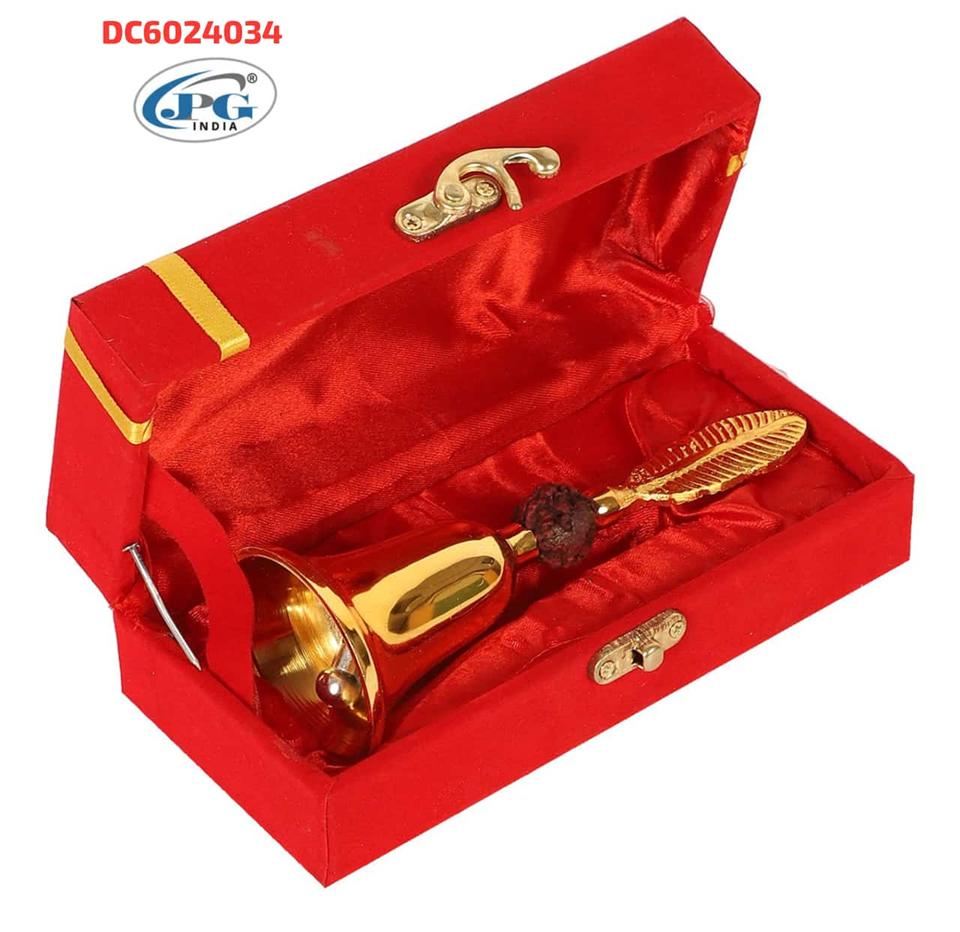 ระฆังทองเหลืองสำหรับพิธีบูชาสวยงาม พร้อมกล่องกำมะหยี่