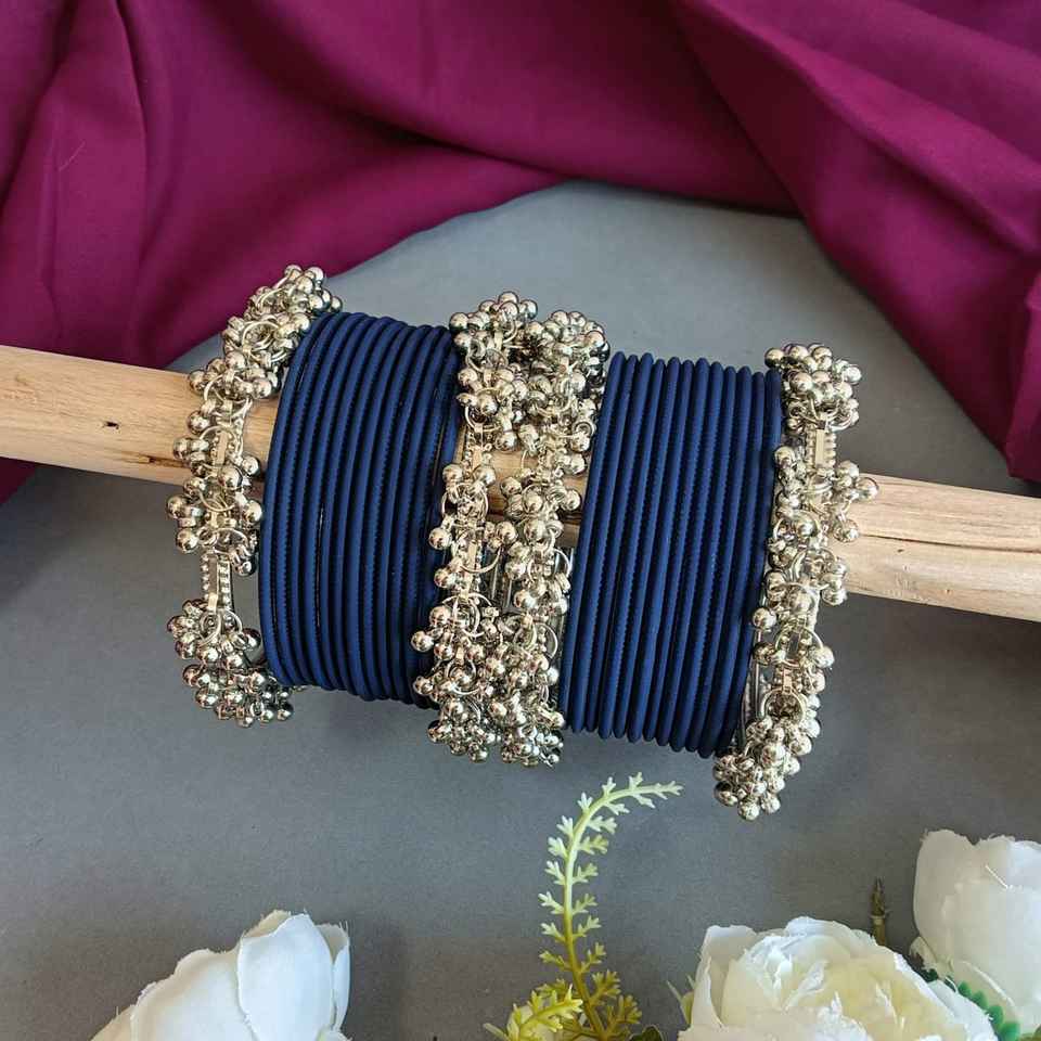 Feature:mbellished with matte metal bangles, and bell charm ghungroo oxidized