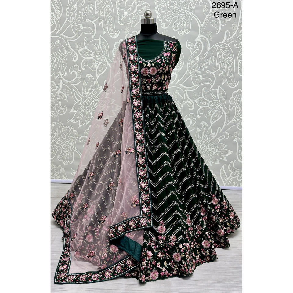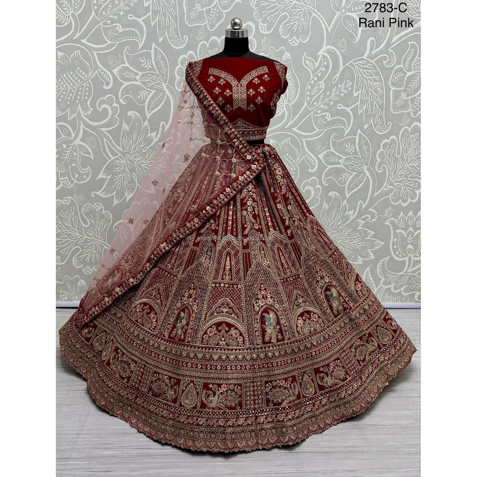 Indian Bridal Wear Velvet Collections for Bride With Zarkhan Work by Fabzone