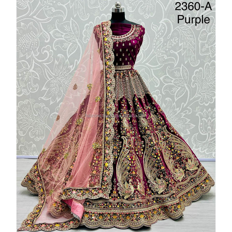 Indian Bridal Wear Velvet Collections for Bride With Zarkhan Work by Fabzone