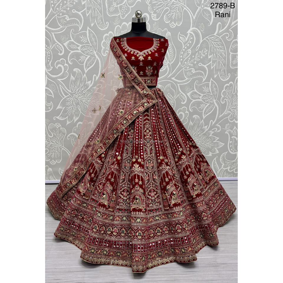 ชุดเจ้าสาวอินเดียผ้ากำมะหยี่ คอลเลคชั่นสำหรับเจ้าสาว พร้อมงานปักซาร์คาน โดย Fabzone รุ่น FZBELLA