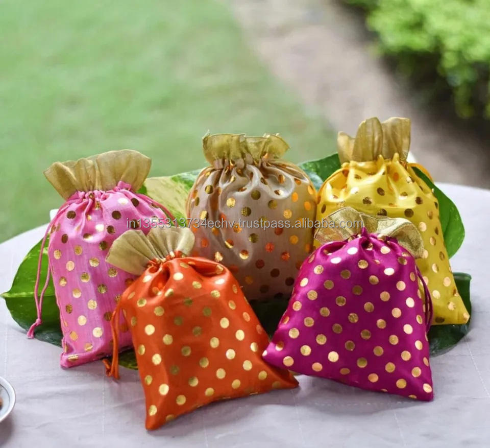 อินเดียผ้าโพกพา Potli งานแต่งงานโปรดปรานคืนของขวัญถุงผลไม้แห้งขนม Potli สายรัดกระเป๋า Potli