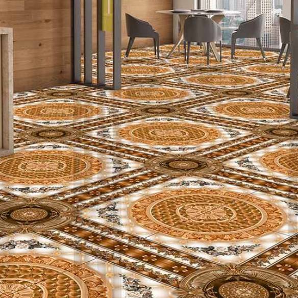 กระเบื้องปูพื้นเซรามิกอินเดีย HR-1018การพิมพ์พื้นผิวมันวาวกาลิชาในพรมสีเหลืองทองดูกระเบื้องสำหรับห้องนั่งเล่น