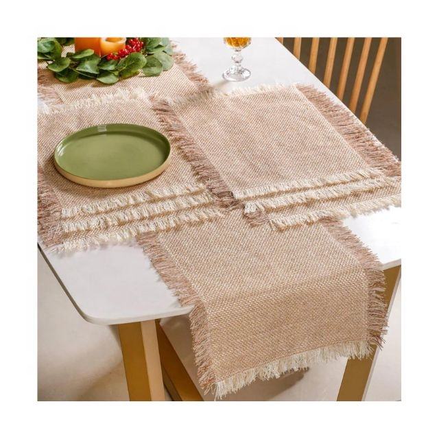 ผ้ากระสอบปักลายแบบอินเดียผ้ากระสอบสีน้ำตาลมีพู่100% ผ้าฝ้ายออร์แกนิคผ้าไมโครไฟเบอร์ได้รับการรับรอง