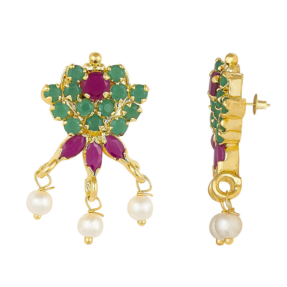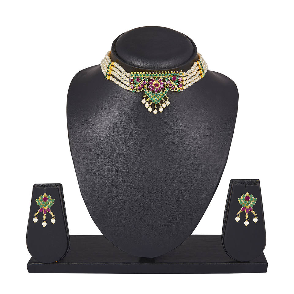 Indian Choker Jewelry Set Traditional Crystal Faux Pearl Beaded Bridal Jewellery Set for Women, Multicolor