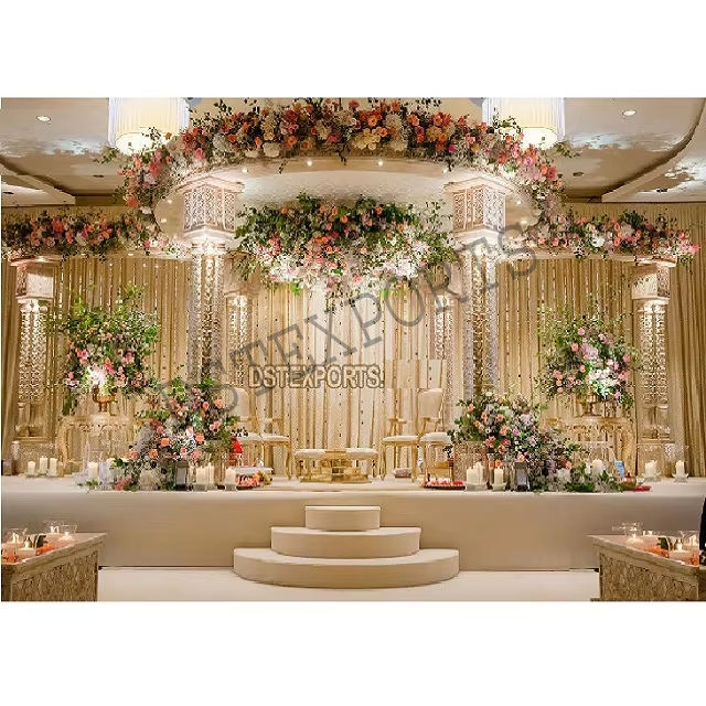 ชุดตกแต่งมณฑปงานแต่งงานแบบอินเดียสุดหรู กำลังเป็นที่นิยม มณฑปไฟเบอร์แบบสามเสา Mastani มณฑปงานแต่งงานแบบสามเสา รุ่นล่าสุด นิวเม็กซิโก