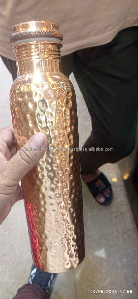 ขวดน้ำทองแดงพิมพ์ลาย100% ล้วนของอินเดียขวดน้ำทองแดงสำหรับยิมกีฬาและการเดินทางขวดน้ำผลิตในอินเดีย
