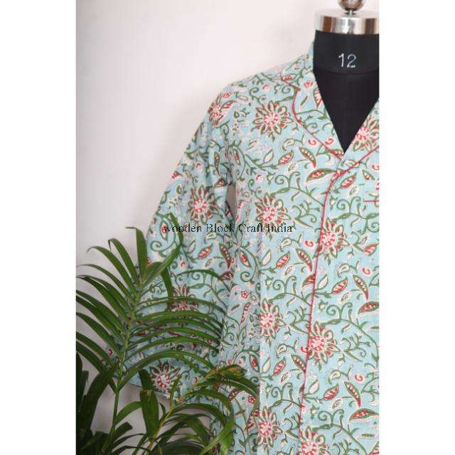 ชุดเดรสผ้าฝ้ายอินเดีย เสื้อเชิ้ตผู้หญิง เสื้อผ้าฝ้ายพิมพ์ลายทำมือ เสื้อเชิ้ตผ้าฝ้ายโบฮีเมียน พิมพ์ลาย เสื้อผ้าผู้หญิงไซส์ใหญ่