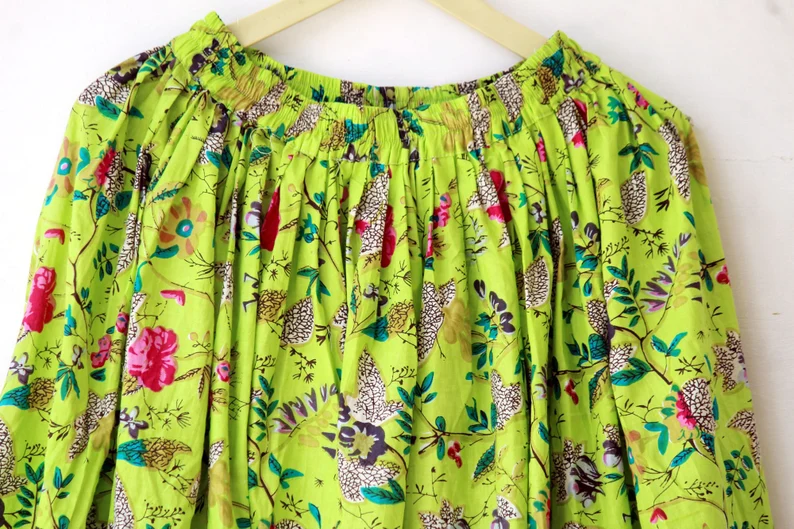 ผ้าฝ้ายอินเดียแบบดั้งเดิมบล็อกมือพิมพ์ชนเผ่าผู้หญิงกระโปรงแม็กซี่ห่อยาว