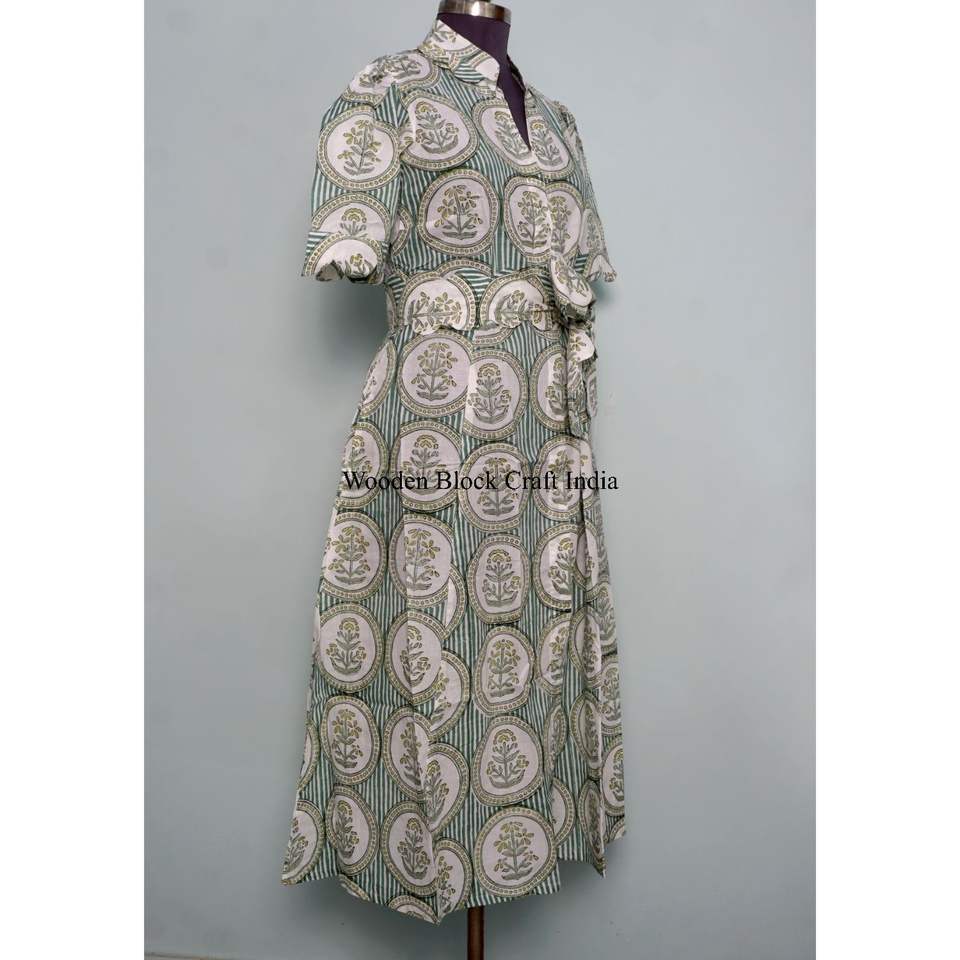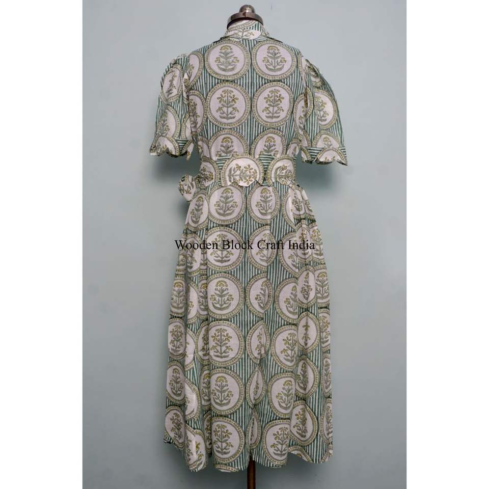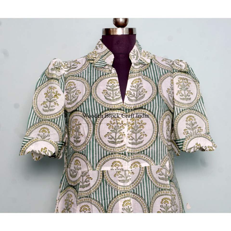 ชุดเดรสผ้าฝ้ายพิมพ์ลายดอกไม้สไตล์อินเดีย ชุดเดรสติดกระดุม ชุดคลุมลำลองสำหรับผู้หญิง ชุดเดรสพิมพ์ลายแขนสั้น ยาว
