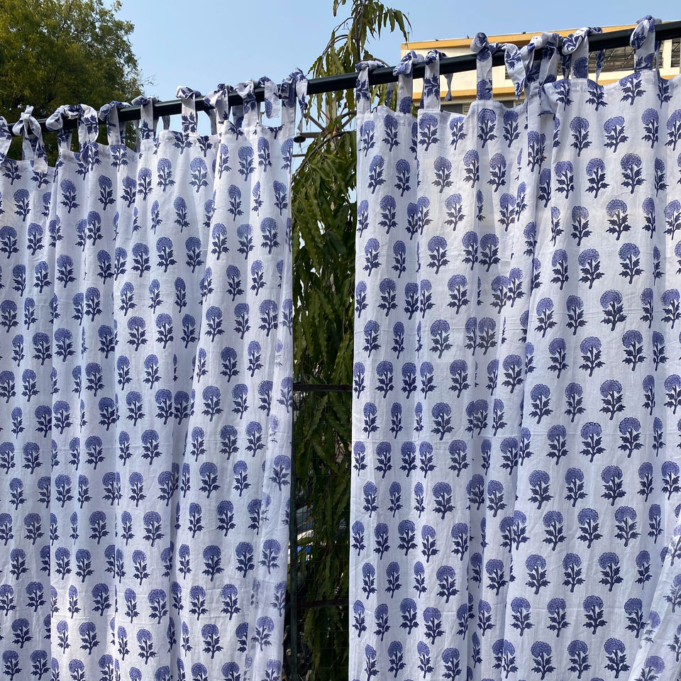ผ้าม่านพิมพ์ลายดอกไม้ผ้าฝ้ายอินเดีย ผลิตด้วยมือ โรงงาน OEM ผู้ผลิตขายส่งสำหรับโรงแรม ห้องนอน ห้องนั่งเล่น