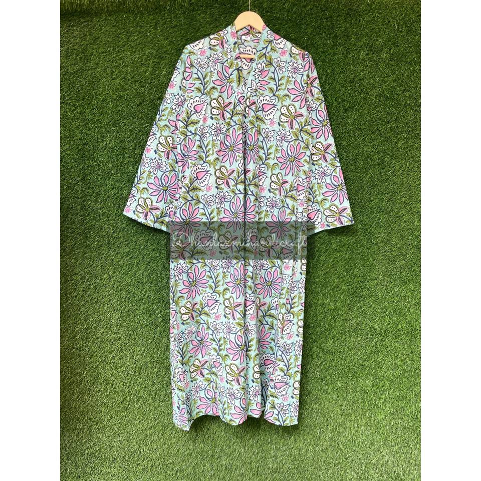 ชุดเดรสลําลองพิมพ์ลายผ้าฝ้ายอินเดียพร้อมกระเป๋าแขนยาวคอวีสําหรับฤดูร้อนและชุดปาร์ตี้ชายหาด