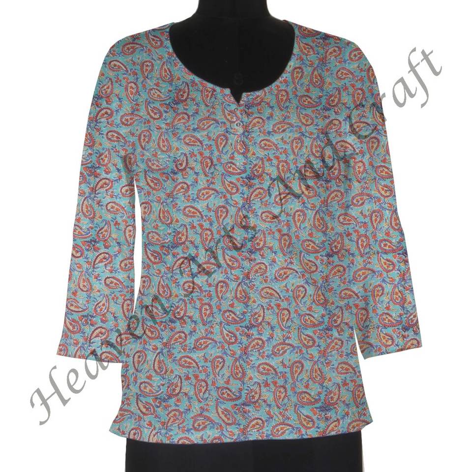 Indian Cotton Hand Block Print Top Women Tunic Long Sleeves Summer Kurti Dress Manufacturer