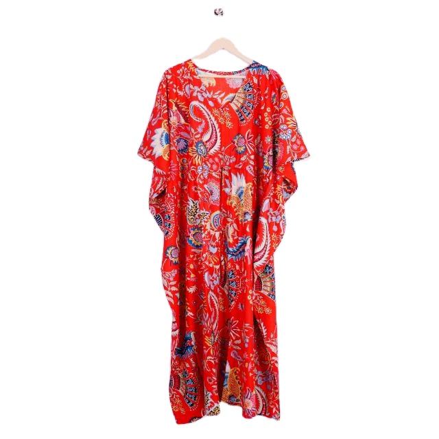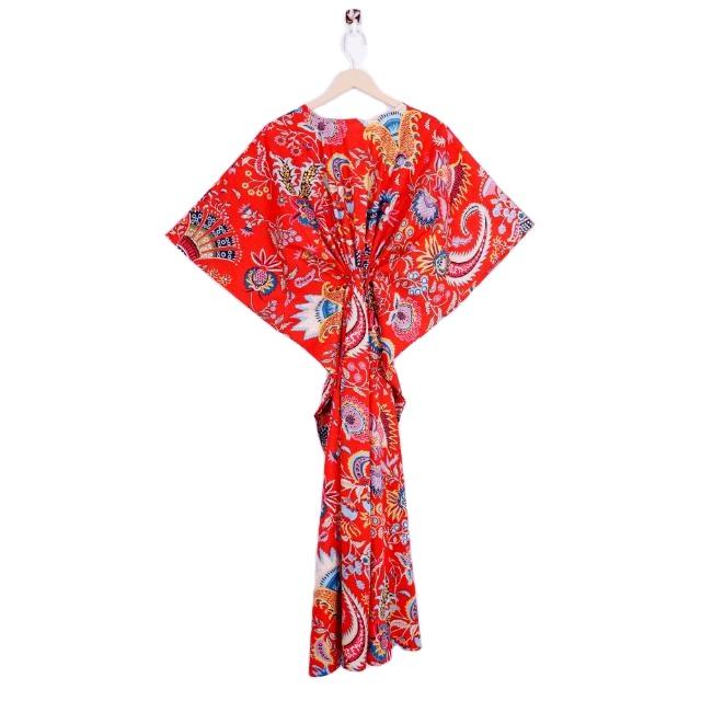 Indian Cotton Hand Block Printed Kaftan Dress Long Casual Beachwear with Floral Design Free Size Gift for Women and Girls