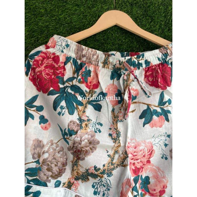 ชุดชุดนอนผ้าฝ้ายอินเดียพิมพ์ลายบล็อกสำหรับผู้หญิงชุดกางเกงแขนสั้นงานแฮนด์เมดฤดูร้อน