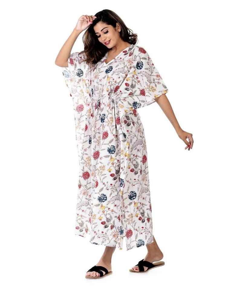 ชุดคาฟตันผ้าฝ้ายอินเดียสำหรับผู้หญิง งานแฮนด์เมด ชุดคลุมชายหาด คิโมโน โรบ สวมใส่สบาย เหมาะสำหรับใส่ในรีสอร์ท