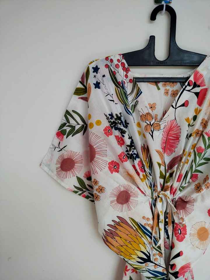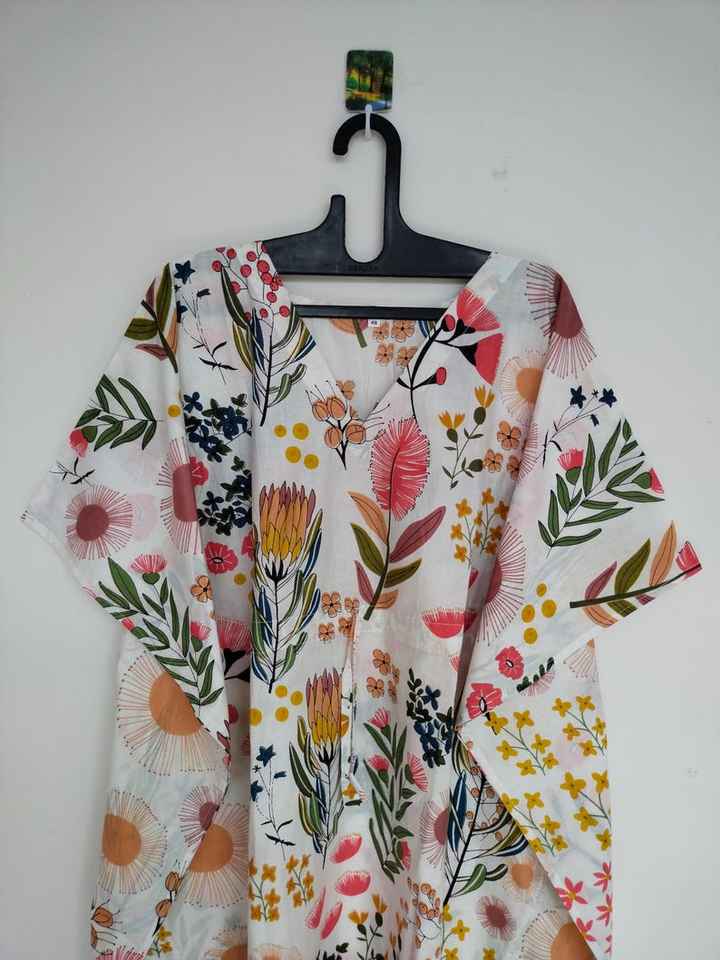 ชุดคาฟตันผ้าฝ้ายอินเดีย งานแฮนด์เมด ชุดคลุมชายหาด คิโมโน โรบ โบฮีเมียน ชุดลำลองสำหรับวันหยุดพักผ่อนฤดูร้อน