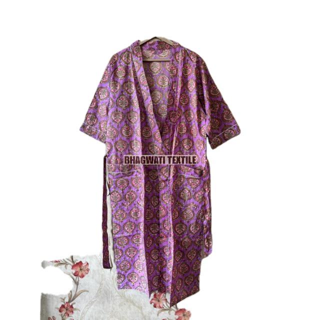 เสื้อคลุมกิโมโนคอวีพิมพ์ลายสัตว์ทำจากผ้าฝ้ายออร์แกนิค100% อินเดียใส่ในชีวิตประจำวันใส่สบายชุดนอนฤดูใบไม้ผลิฤดูใบไม้ร่วงฤดูร้อน