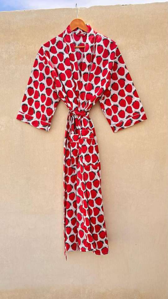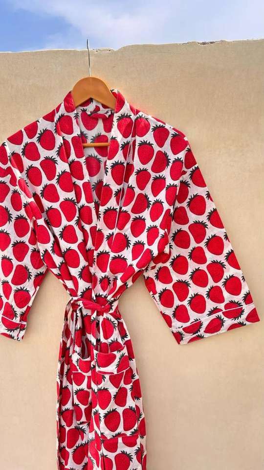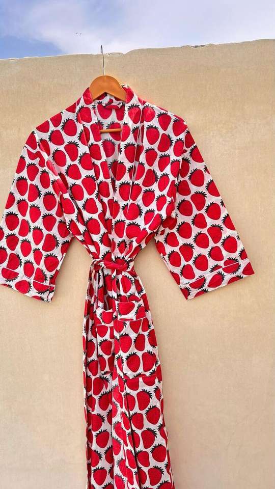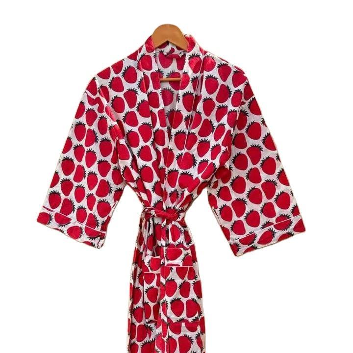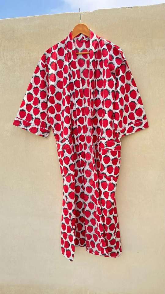 ชุดคลุมกิโมโนผ้าฝ้ายอินเดีย, ชุดคลุมเพื่อนเจ้าสาวลายบล็อกพิมพ์, ชุดนอนฤดูร้อน, ไซส์เดียว
