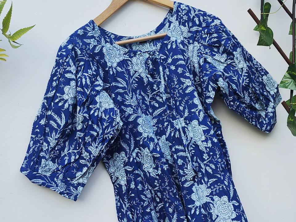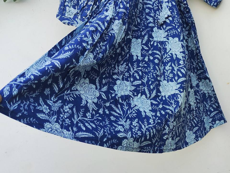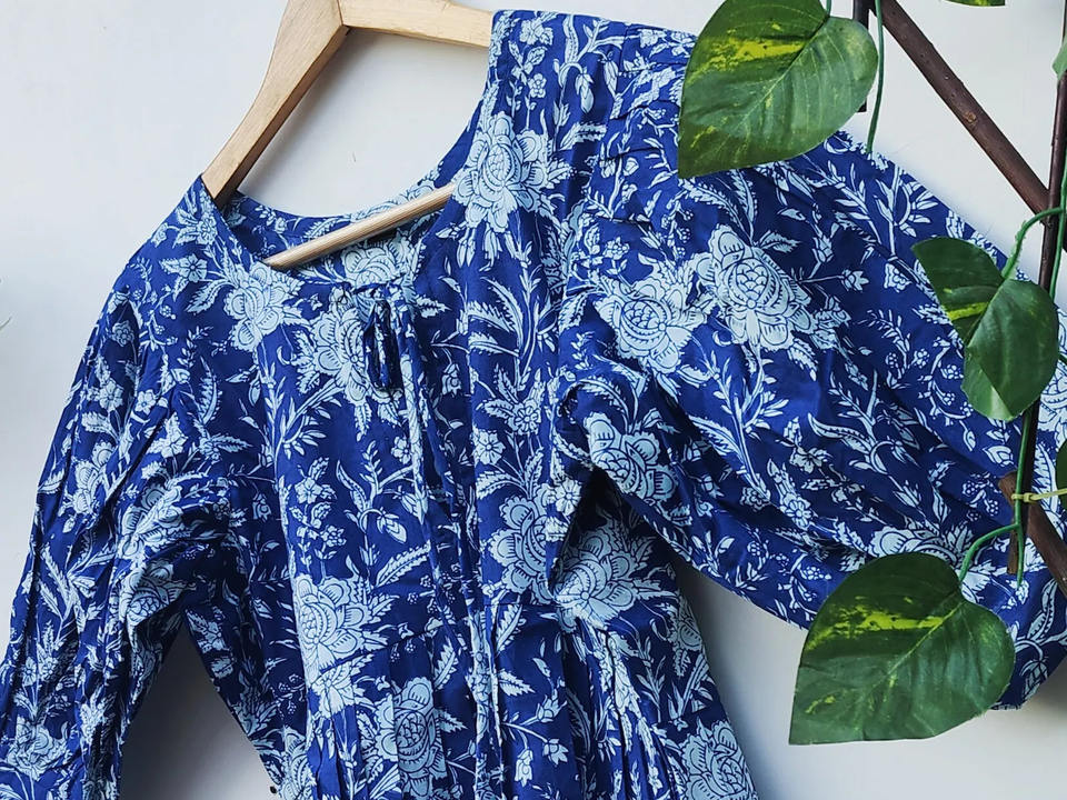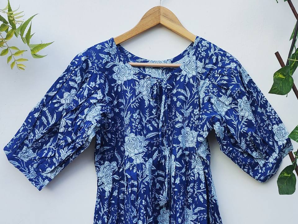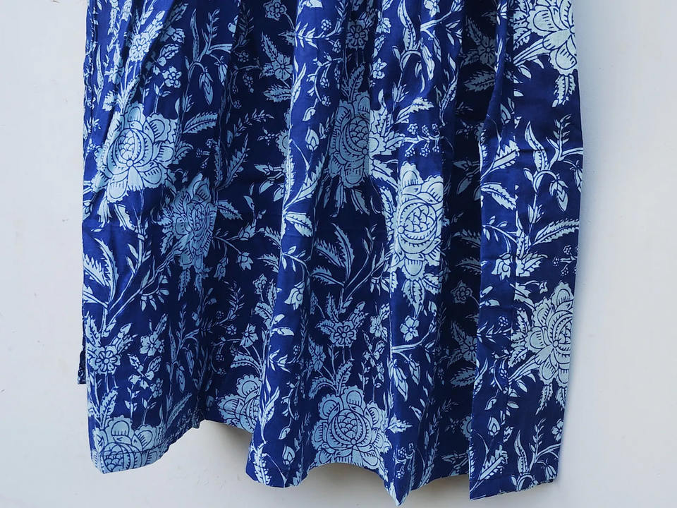 Indian Cotton Midi Dress Eco-Friendly Floral Hand Block Print Deep Neck Partywear Summer Fashionable and Washable