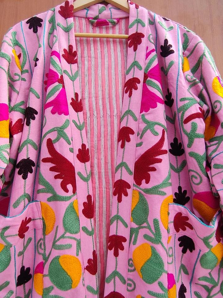 Women's Cotton Jacket Indian Summer New Suzani Embroidery Coat Long and Short Sizes Winter Warmed Kimono