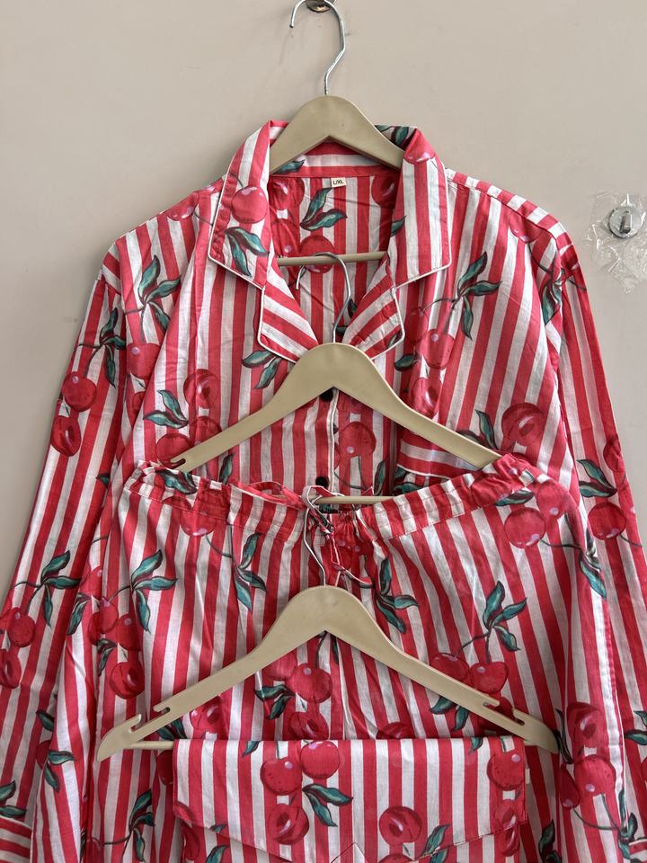 ชุดนอนผ้าฝ้ายอินเดียลายผลไม้ ชุดนอนผู้หญิงสไตล์โบโฮ ชุดนอนลำลอง