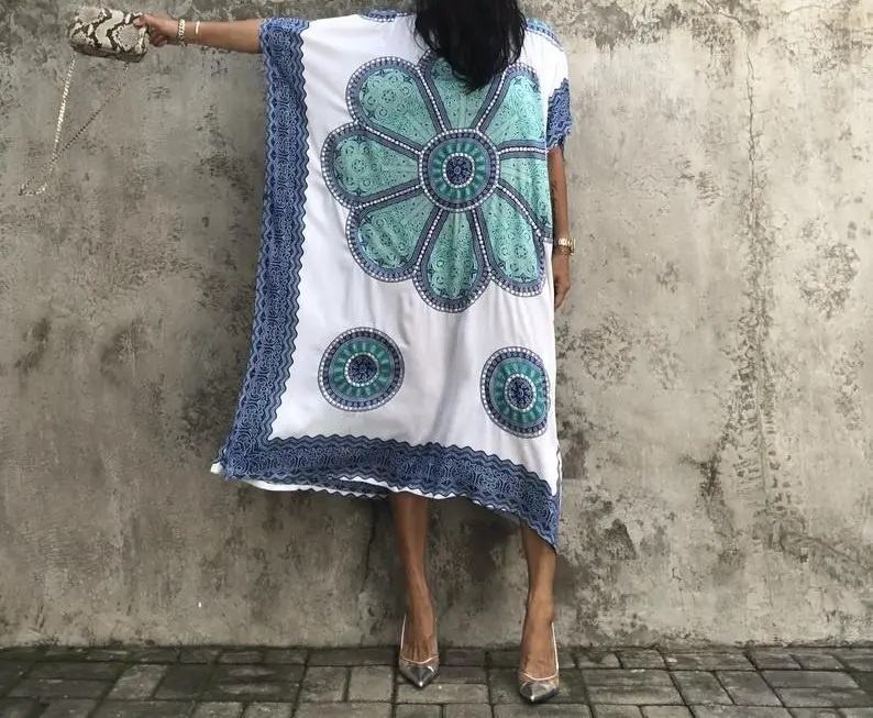 ผ้าฝ้ายอินเดียพิมพ์ชุดนอน Kaftan ชุดเพื่อนเจ้าสาวสั้น Kaftan ชุดผู้หญิงชายหาดชุดฤดูร้อน