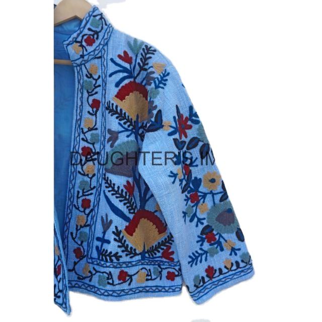 เสื้อแจ็คเก็ตผ้าฝ้ายอินเดียแบบควิลท์ทอมือสำหรับฤดูหนาว สไตล์ยูนิเซ็กซ์ ปักลายดอกไม้แบบซูซานี โบโฮ ฮิปปี้