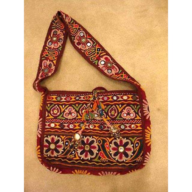 กระเป๋าผ้าคอตตอนสไตล์อินเดียสำหรับผู้หญิงกระเป๋าบันจาราแบบชาวเผ่าทำด้วยมือสะพายไหล่กระจกงานปักเย็บปะติดรีไซเคิลได้ลายนูน