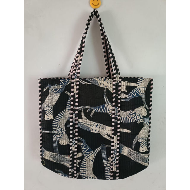 กระเป๋าโท้ทผ้าฝ้ายอินเดียสำหรับผู้หญิง ลายเสือดาวพิมพ์ลายบล็อกด้วยมือ แบบวินเทจ ปิดด้วยซิป ใช้ได้ทั้งฤดูหนาวและฤดูร้อน สามารถปรับแต่งได้ สำหรับฤดูใบไม้ผลิ