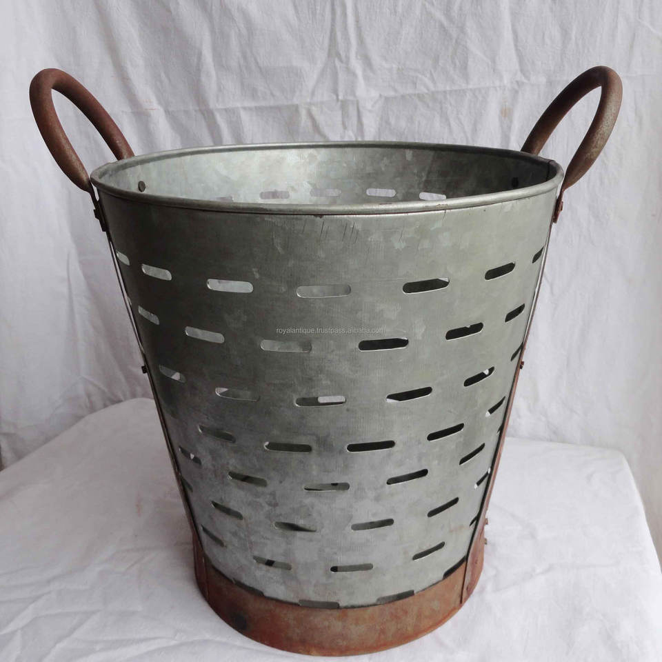 ถังซักผ้าโลหะแบบผลิตจากชาวอินเดียสีเทาใช้สำหรับทำสวน