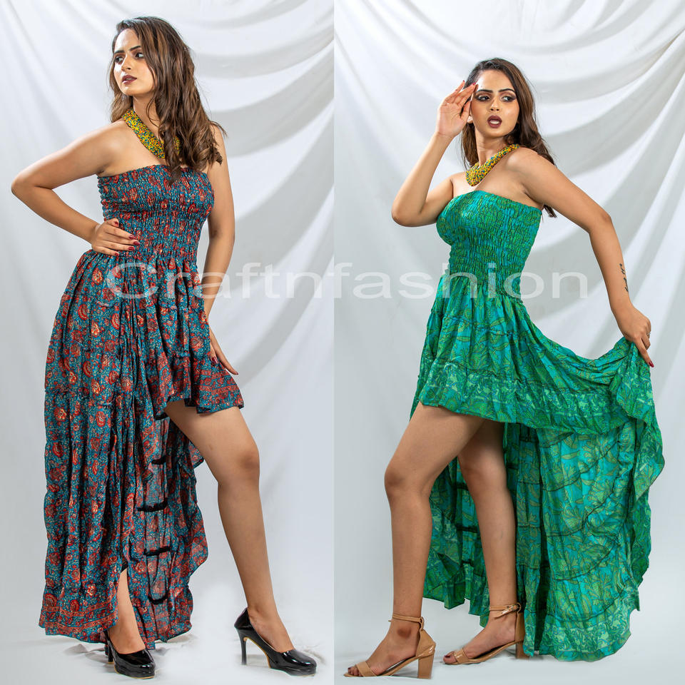 ชุดเดรสเครปอินเดียชุดเดินชายหาดสไตล์โบฮีเมียนยุโรปไซส์ใหญ่พิเศษพิมพ์ลายดอกไม้หลากหลายขนาด