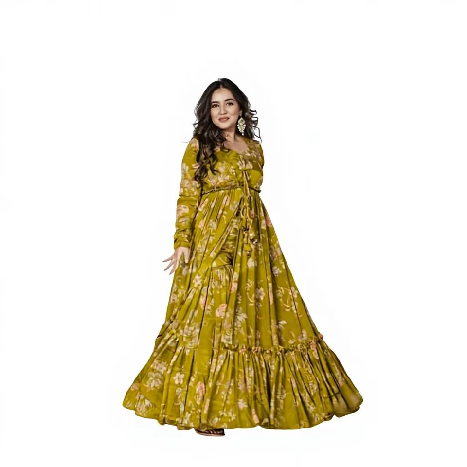ชุดเดรสผ้าไหมแท้พิมพ์ลายดิจิทัล ดีไซน์อินเดีย สวยหรู สไตล์บอลลีวูด เหมาะสำหรับงานปาร์ตี้ แฟชั่นลำลอง ล่าสุด