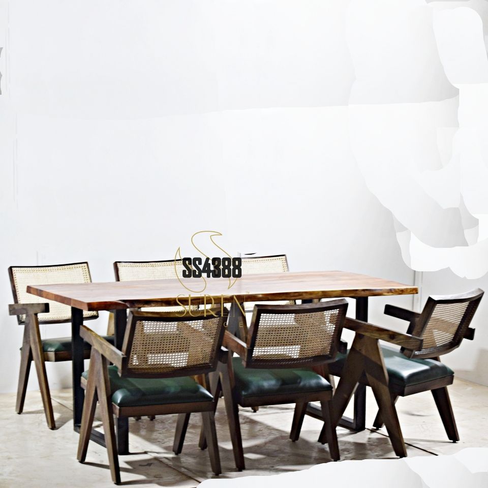 โต๊ะกลมไม้เนื้อแข็งดีไซน์เนอร์ชาวอินเดียพร้อมด้วยเก้าอี้ไม้สำหรับรับประทานอาหารและใช้ในบ้านสำหรับโรงแรมและรีสอร์ท