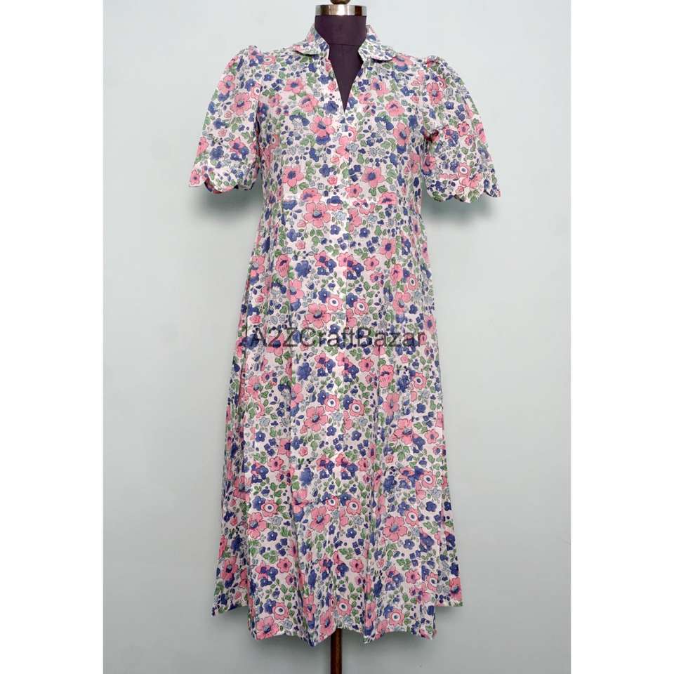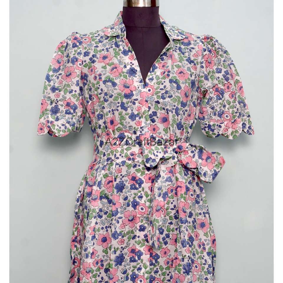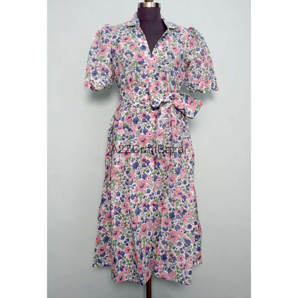 ชุดเดรสลำลองสไตล์อินเดีย แบรนด์ Kangura ผ้าถัก คอวี ความยาวปานกลาง สำหรับผู้หญิง เป็นมิตรต่อสิ่งแวดล้อม ซักได้ ลายดอกไม้ ตกแต่งด้วยกระดุม