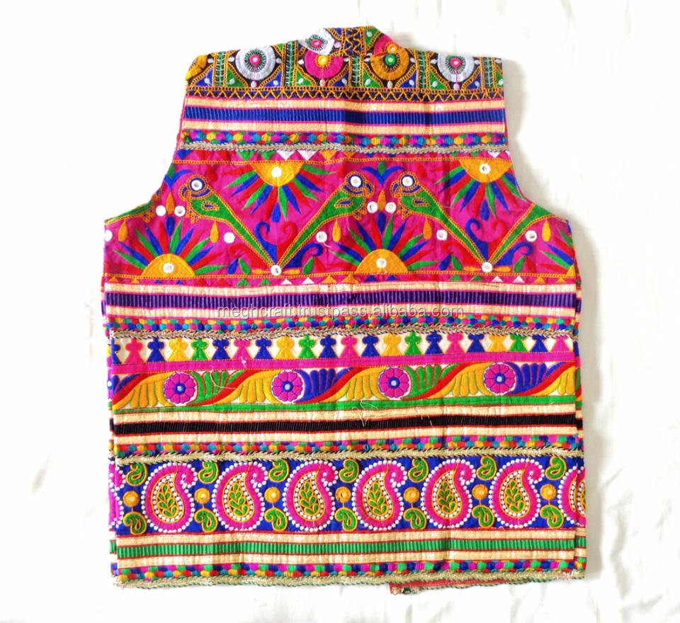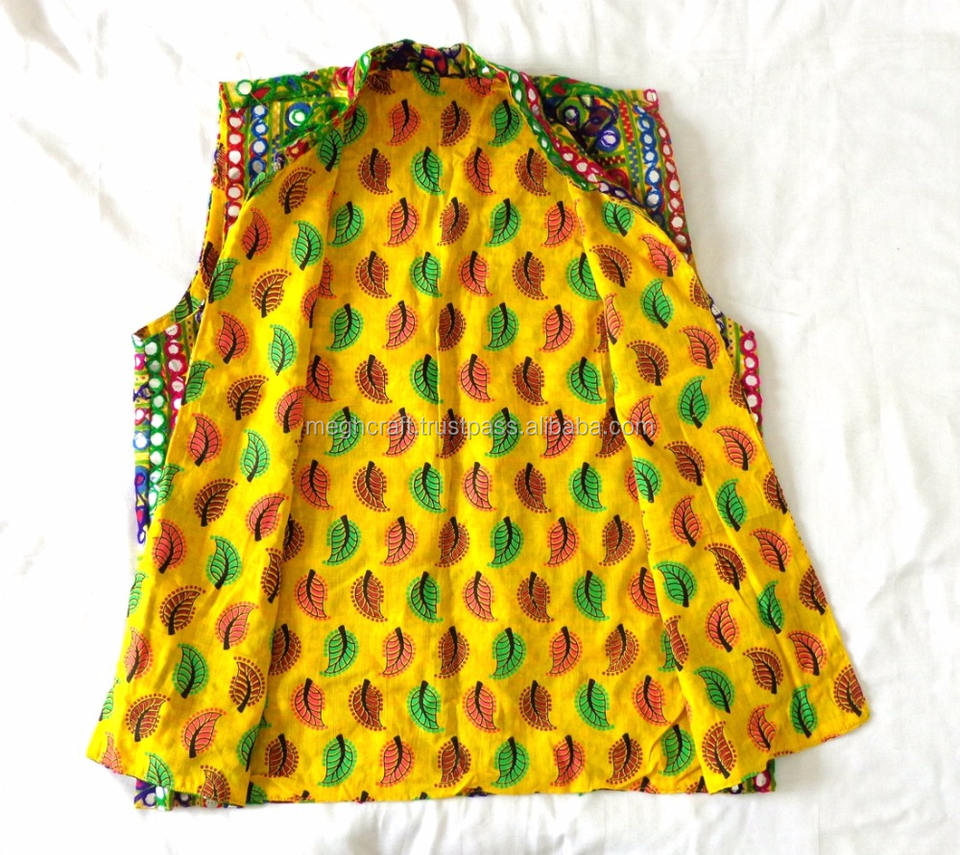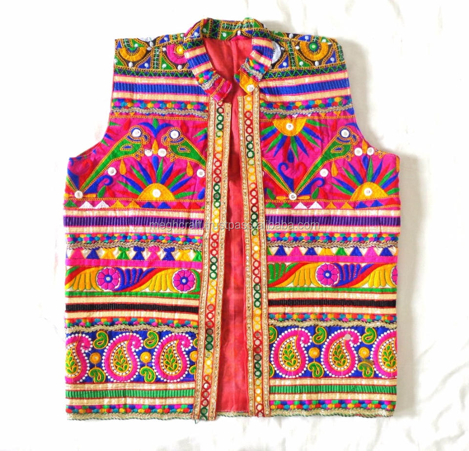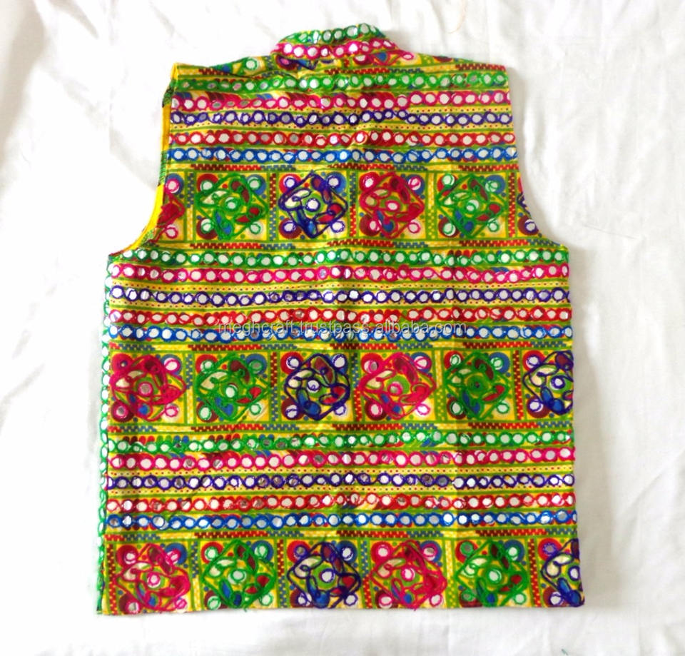 เสื้อแจ็กเก็ตสำหรับผู้ชายงานปักลายกระจกสไตล์อินเดีย,เสื้อกั๊กปักลายแนววินเทจ Kutch-ขายส่ง