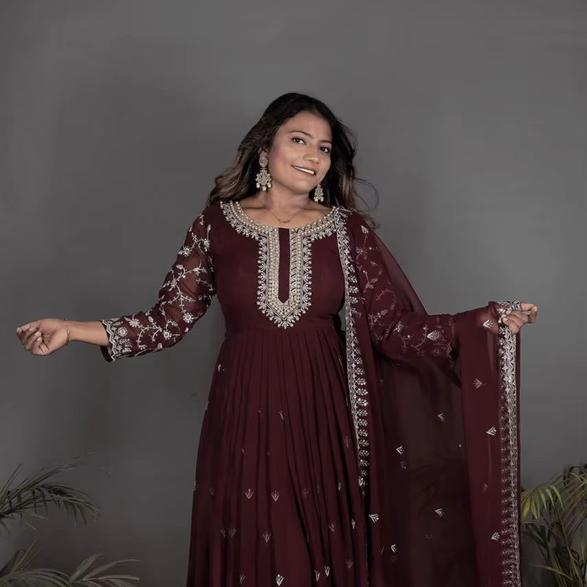ชื่อผลิตภัณฑ์:ชุดปักลาย Georgette faux และด้านล่าง & dupatta