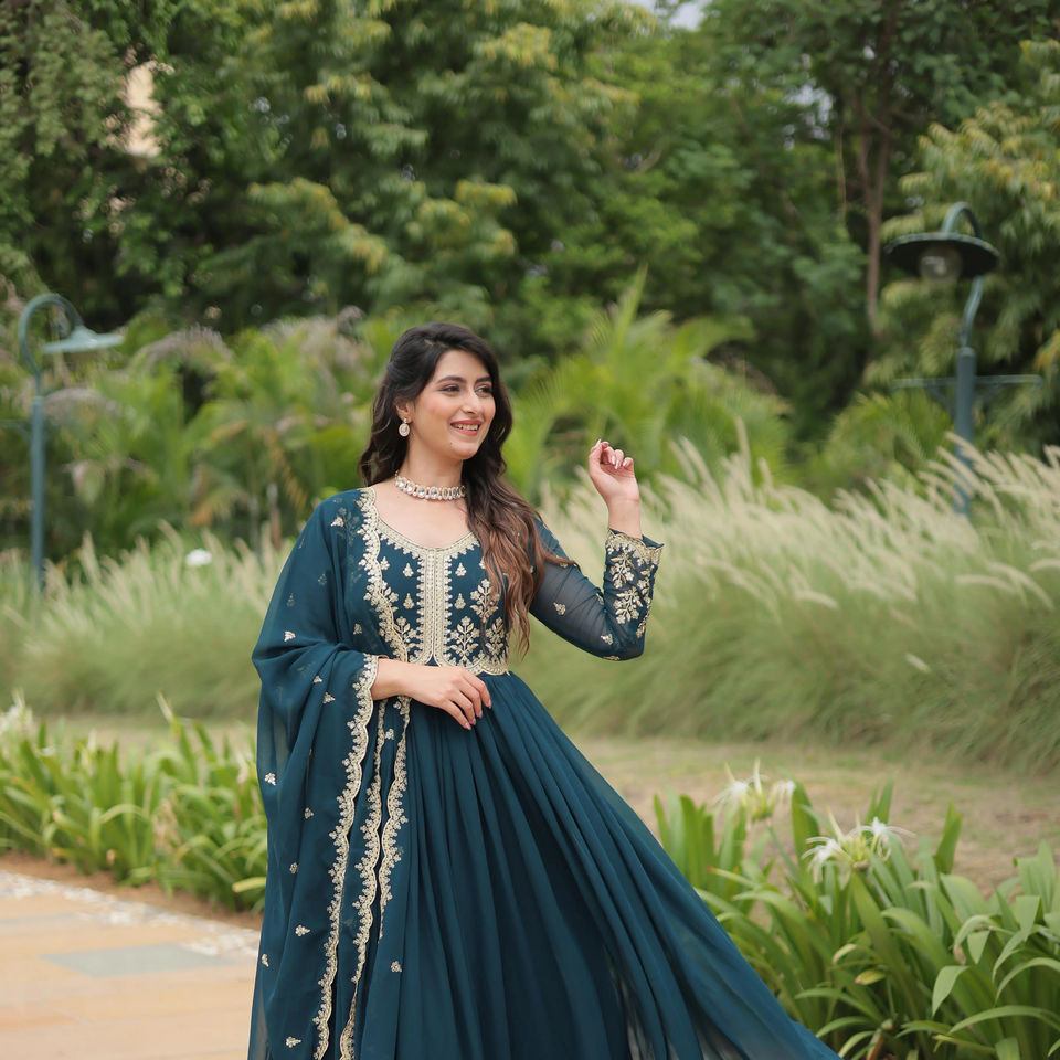 Product Name:Faux Blooming Sequence Embroidery Gown With Dupatta