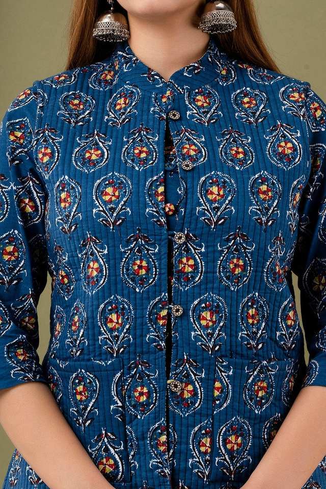 เดรสเคอร์ตาพิมพ์ลายสำหรับผู้หญิงเสื้อแจ็คเก็ตผ้าฝ้าย100% พิมพ์ลายดีไซน์เนอร์อินเดีย